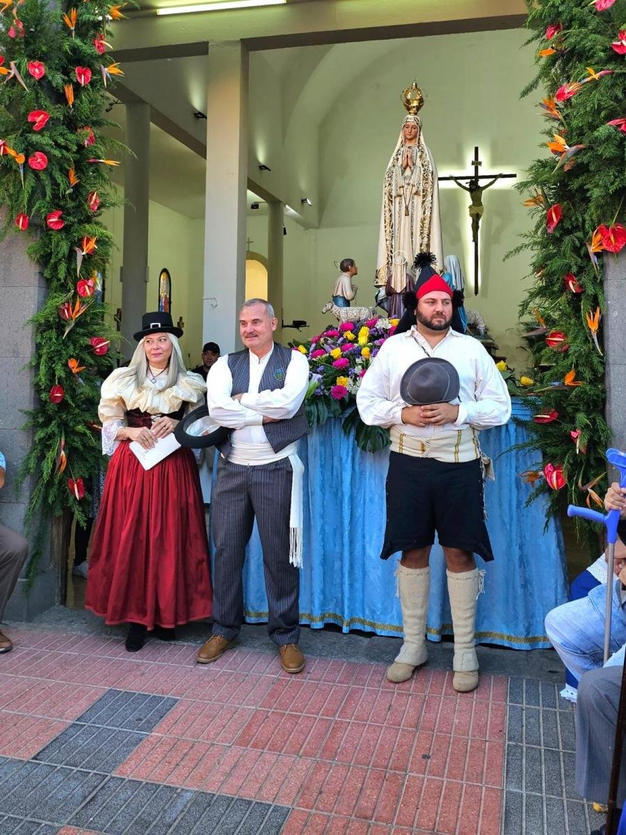 Los vecinos de El Calero peregrinaron este sábado por las calles del barrio, ataviados con trajes canarios y acompañados por carretas, para entregar su ofrenda a Nuestra Señora de Fátima en la tradicional romería. Los romeros, en una muestra de compromiso y solidaridad, entregaron gran cantidad de alimentos a su patrona, quien les esperaba en las puertas de la iglesia.