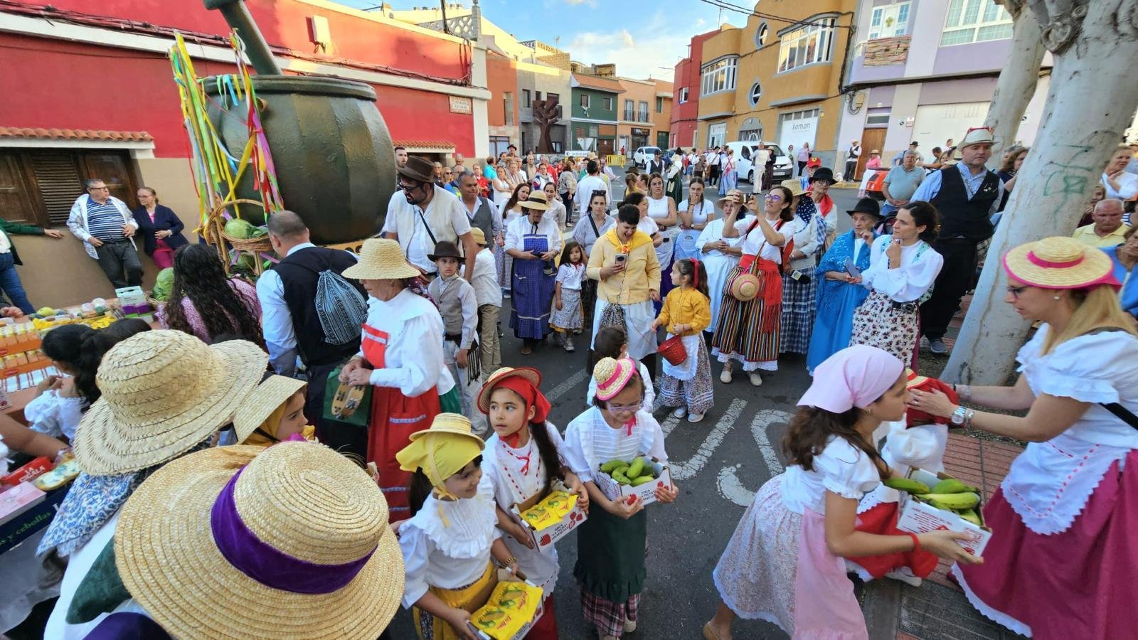 Durante la romería, los participantes pudieron disfrutar de pellas de gofio, papas arrugadas y bocadillos de chorizo de Teror, acompañados por música y cánticos y un inmenso fervor que unió a toda la comunidad que forma el barrio de El Calero.