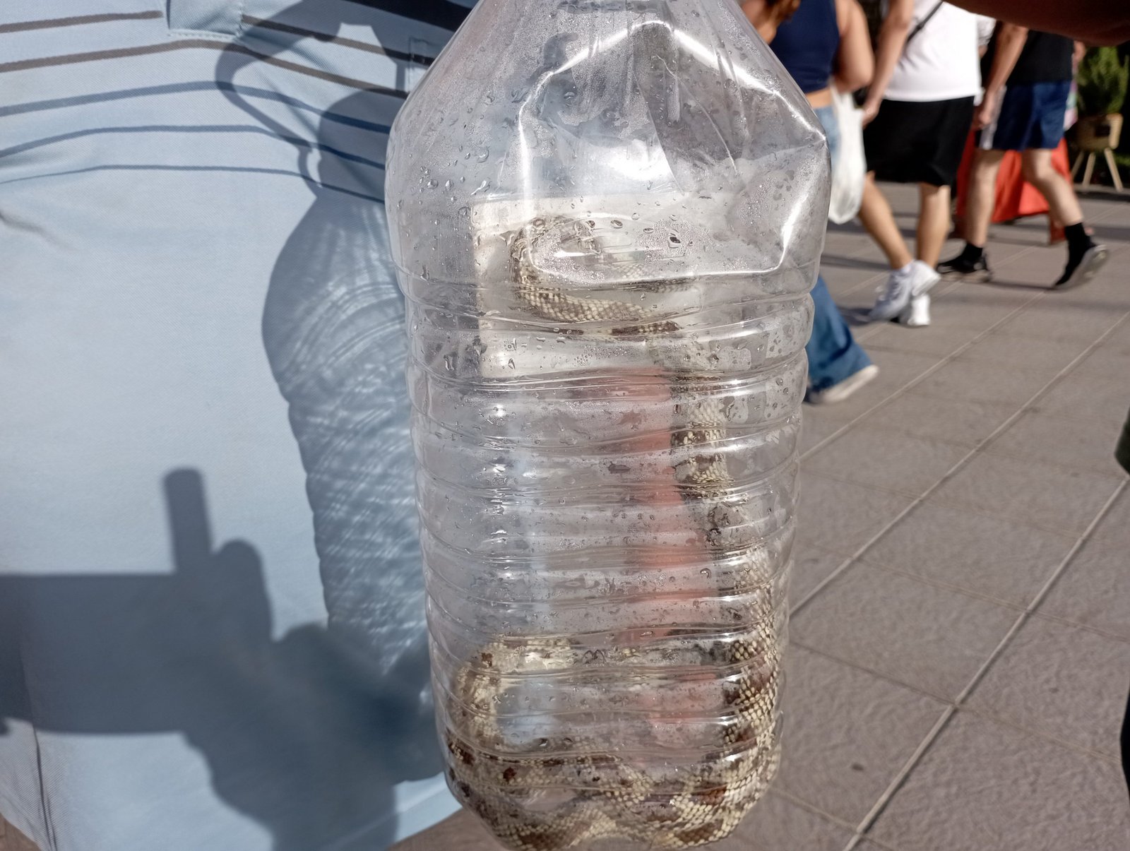 La mañana de hoy fue divertida en el Mercadillo de Jinamar y es que no te daban tiempo para aburrirte. A primera hora aparece Salvador, vecino del bloque 29 de la calle Manuel Alemán Álamo con un garrafa con una serpiente dentro, de california, vivita y coleando de aproximadamente un metro que había cogido en el portal de su casa en Jinamar y que tenía toda la pinta de instalarse como ocupa en dicho bloque; » viene sin papeles, sin visado, sin pagar aranceles seguramente nos la mandó el cabeza de zanahoria de Donald Trump para que se instalara de ocupa aquí en Jinamar. Lo peor es que he llamado al Seprona varias veces para que la vengan a buscar y no me hacen ni puñetero caso, que coño hago con ella?» me contaba cabreado.
