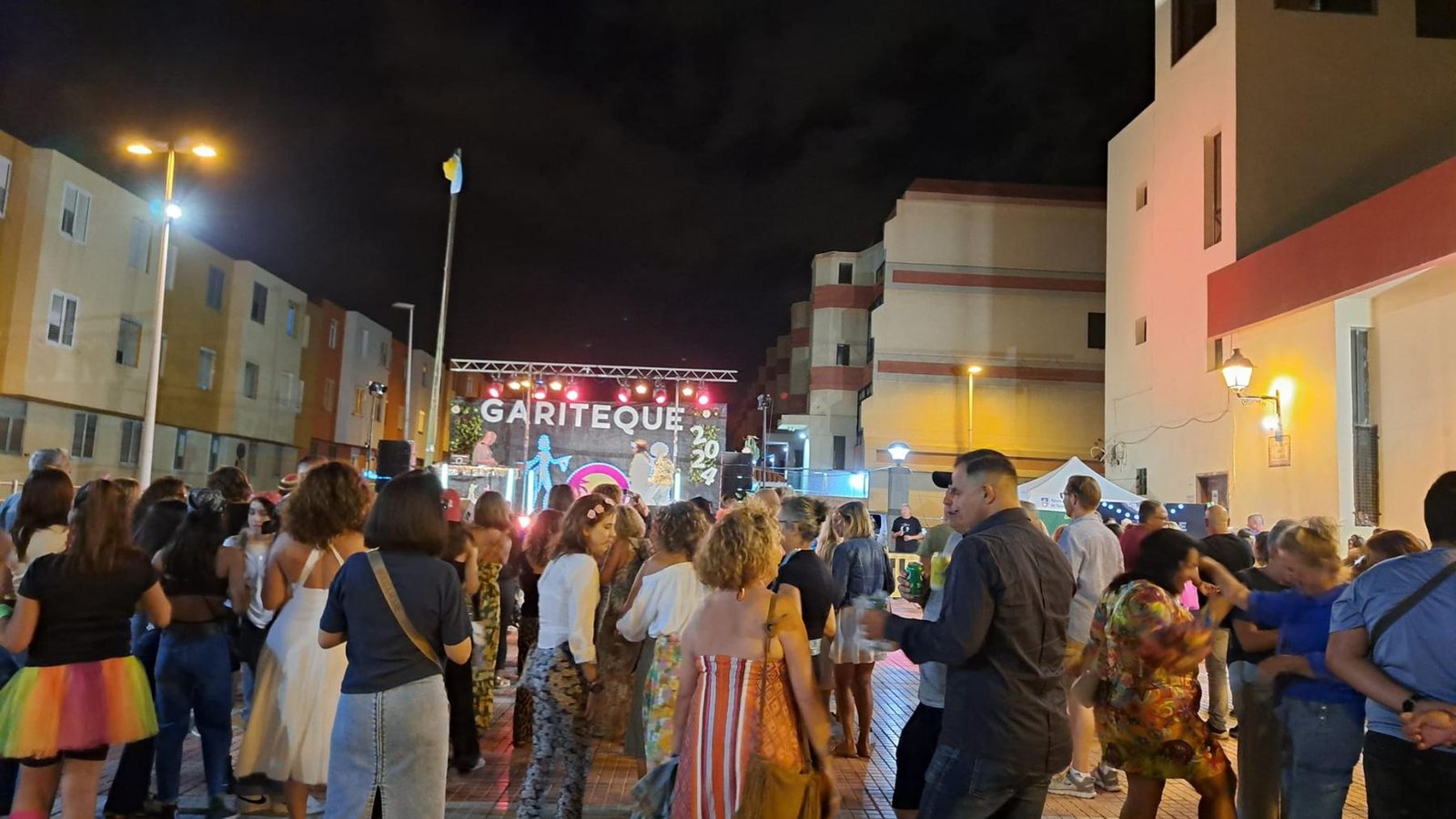 Este sábado tuvo lugar en la plaza uno de los eventos más esperados del año en La Garita, el Gariteque, una fiesta con la que los vecinos recordaron las celebraciones de hace más de tres décadas en las que los niños actuaban en una escala en hi-fi. Las personas acudieron ataviados de las décadas de los 60, 70, 80 y 90.