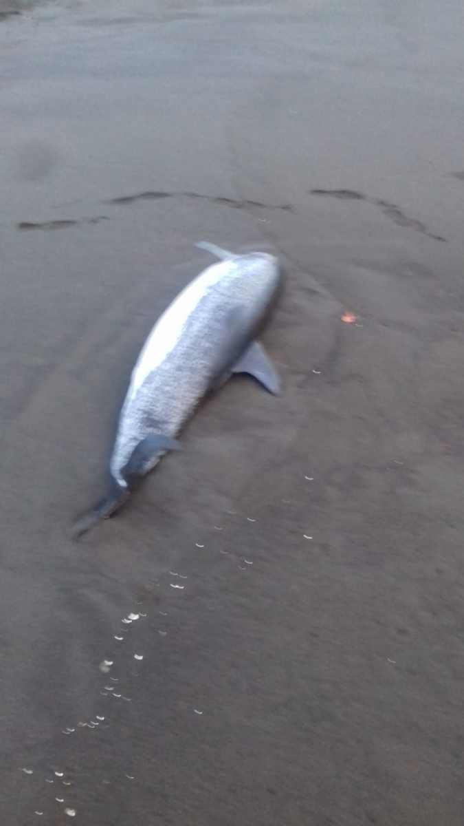 Félix indicó que «el cetáceo estaba entero, sin golpes ni mordidas, como que había muerto hacía poco. Es posible que fuera víctima de una pesca con potera, una práctica que de forma habitual realizan muchos pescadores en la zona».