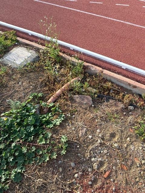 Lo mismo ocurre con las zonas verdes y todo el césped del recinto deportivo, que se dejó secar y ha terminado por sedimentar y endurecer el suelo. Ahora tendrá que retirarse y replantarse en óptimas condiciones para que la pista de atletismo pueda homologarse para la competición. Además, para homologarla deberá dotarse a las instalaciones de un técnico supervisor permanente, y también revisarse el acabado definitivo del nuevo tartán colocado a la pista, porque presenta signos de mala ejecución, incluso con tuberías al descubierto. Está mal cortado y eso provocará filtraciones de agua, burbujas y el crecimiento de hierbas que acabarán por volver a estropearlo malogrando la inversión pública realizada.