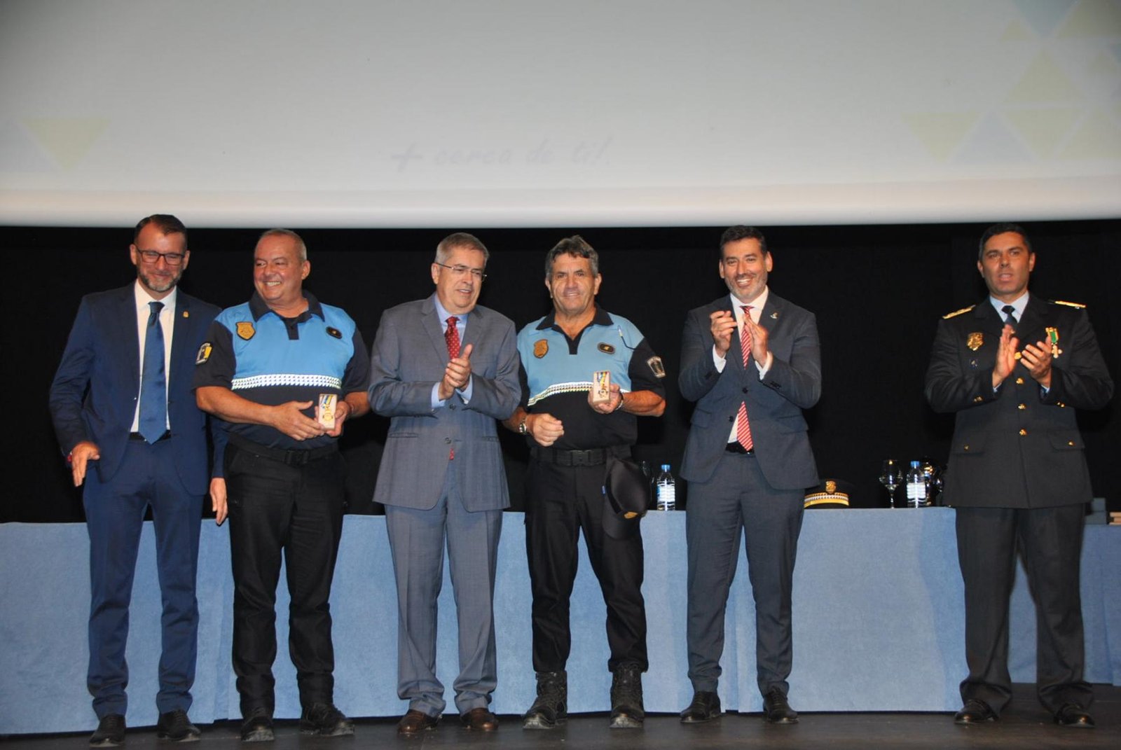 El reconocimiento de la Cocejalía de Seguridad y Emergencias también se hizo extensible a personas ajenas al cuerpo de la Policía Local de San Bartolomé de Tirajana, en concreto a la funcionaria Alicia Moreno Macías, responsable del Servicio de Prevención de Riesgos Laborales en este ayuntamiento; al oficial de la Policía Local del Ayuntamiento de Telde José Juan Florido Sánchez, y al subinspector y al agente de la Policía Nacional de la Comisaría Local de Maspalomas, Román Marrero Martel y Julio Medina Castellano, respectivamente.