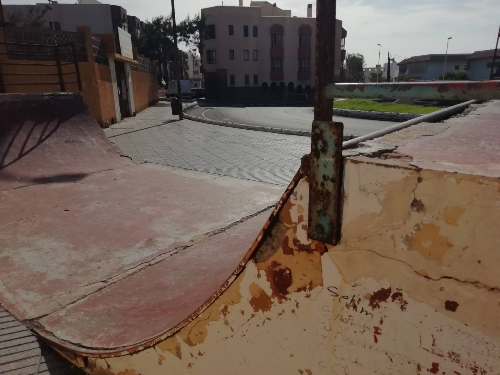 Hace unas Semanas atrás o casi más de un Mes  desde el Colectivo mantuvimos una Reunión con el nuevo Concejal  al cual le trasladamos la situación de la misma. Se nos traslada que están trabajando para solventar algunas cosas y que tienen un Proyecto para la Retirada de la Half Piper  (La U), les  hemos trasladado que sería Urgente el Vallado de la misma con Vallas de altura de las que se usan para las Obras  dado que muchos niño/as juegan en ella tanto a la entrada como a la salida del Colegio.