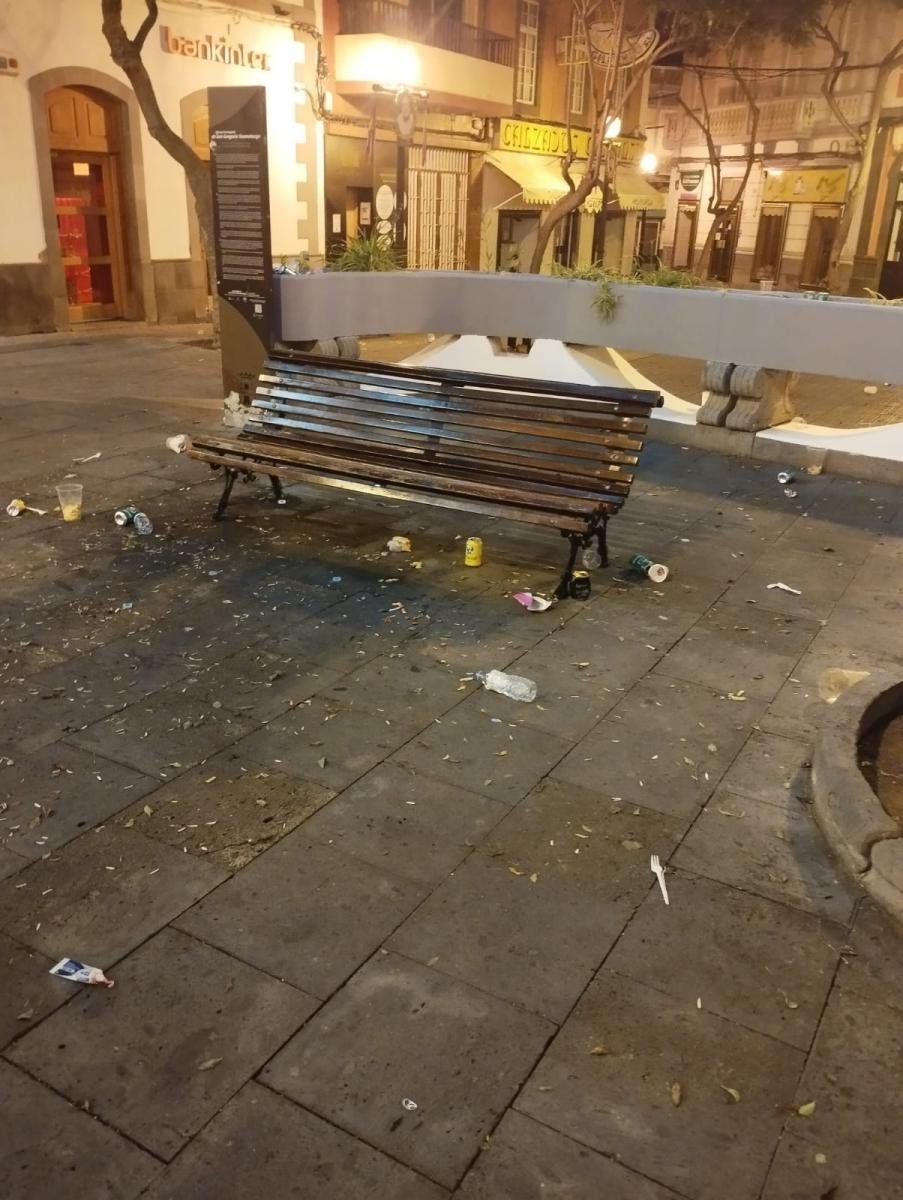 A pesar de este esfuerzo, el Consistorio constató una enorme cantidad de residuos vertidos por todo el casco de San Gregorio, como bolsas de basura, envases, colillas, restos de comida y otros objetos abandonados en las calles, plazas y jardines del barrio.