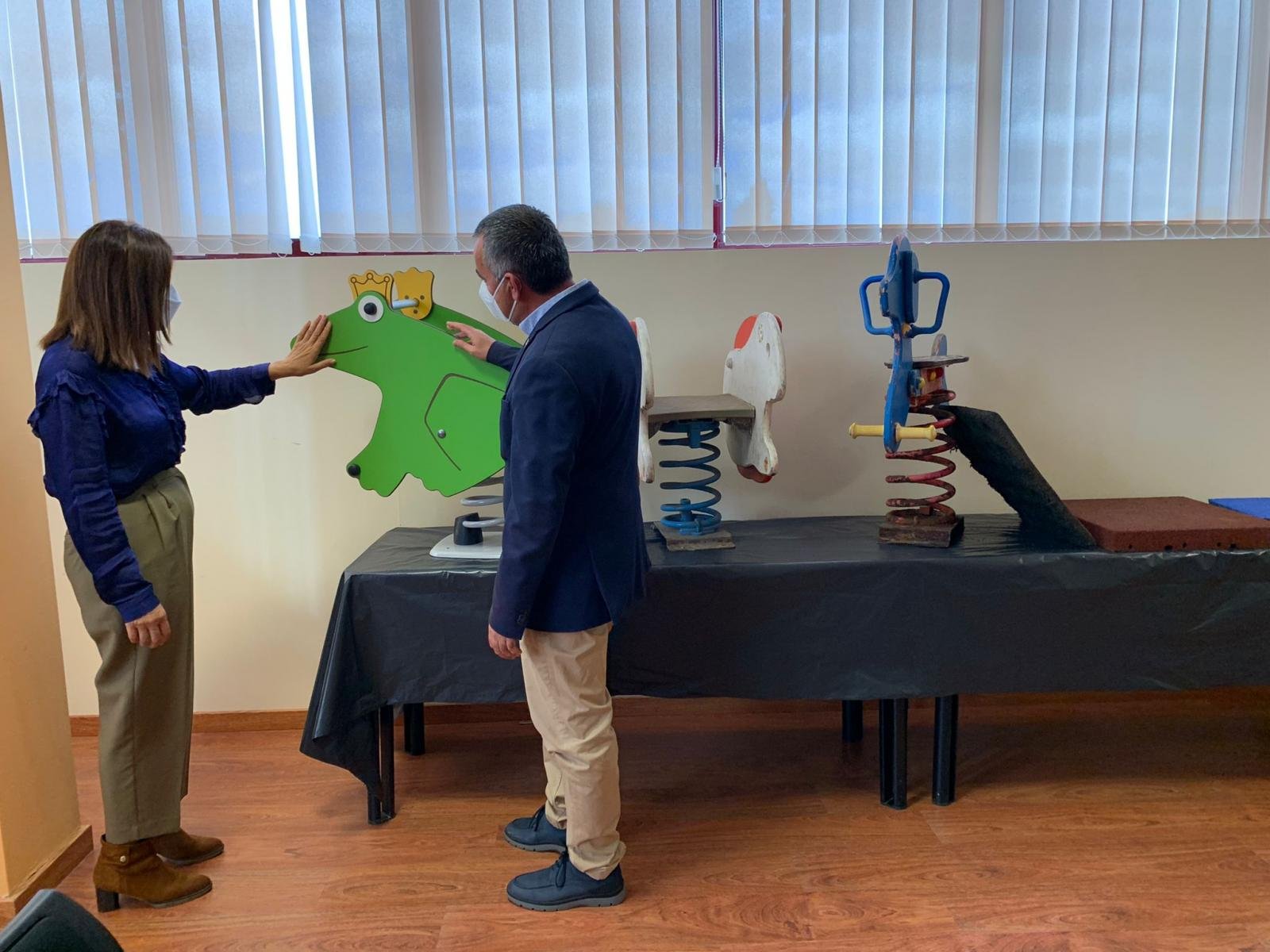 La alcaldesa, Carmen Hernández, y el concejal de Parques y Jardines, Álvaro Monzón, presentaron este lunes en rueda de prensa el Plan de Renovación Integral del Mobiliario en Áreas Infantiles Adaptadas, un proyecto que incluye además de los 91 parques para niños.