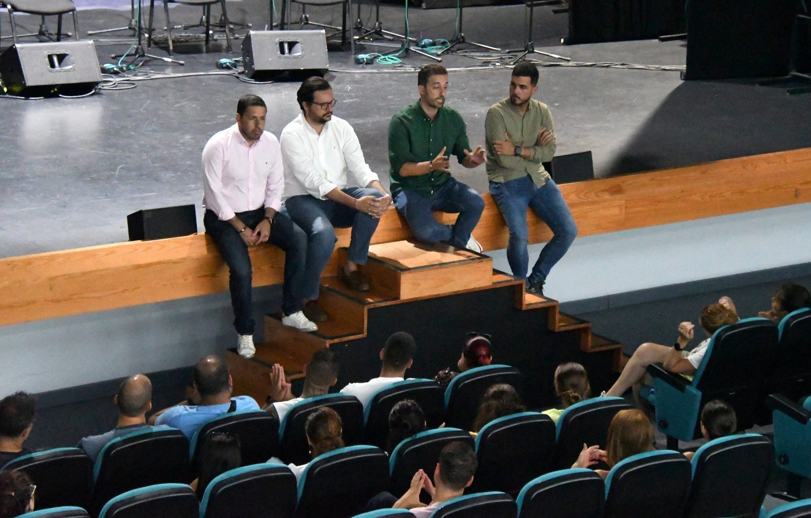 Varios miembros del grupo de gobierno, encabezados por el alcalde, Juan Antonio Peña, entre los que también se encontraban el vicealcalde y concejal de gobierno de Obras Públicas, Sergio Ramos, el edil de Urbanismo, Héctor Suárez, y el regidor Deportes, Cristhian Santana, se reunieron en la tarde de este miércoles, en el Teatro Juan Ramón Jiménez, con los extrabajadores de Lude Servicios Deportivos, Educativos y Auxiliares, que hasta 2021 formaban parte de la gestión del polideportivo municipal Paco Artiles, para ponerles al día sobre el estado actual de las piscinas municipales.