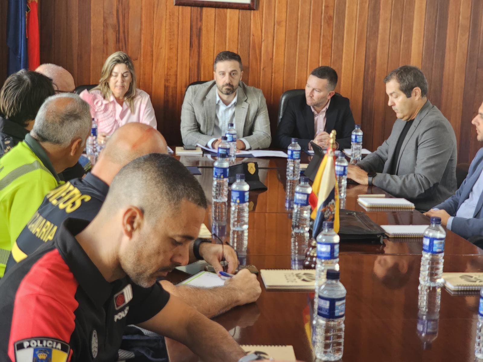 En cuanto a las personas que conformaron la reunión principal, estuvieron presentes, junto a Juan Antonio Peña, la primera teniente de alcalde y concejala de Playas y Limpieza Viaria, María Calderín; el concejal de Seguridad Ciudadana, Miguel Rodríguez; y los ediles de Vías y Obras y Urbanismo, Iván Sánchez y Juan Francisco Jiménez, respectivamente. Además, el jefe de la Policía Local de Telde, Félix Ramos; el responsable de Unidron del cuerpo local, José Florido; el operario municipal, Marcos Monzón; el responsable de Aguas de Telde, Luis Rua; el jefe de agrupación de Protección Civil, Yeray Martel; en representación de Valoriza, Pablo Grande; de Proactiva, Juan Manuel Dávila, Miguel Ángel y José Luis Pérez; el inspector jefe de la Policía Nacional, Raúl Sanabria; el sargento primero de la Guardia Civil, Santiago Cayo; el jefe de la Unidad de Seguridad Ciudadana de la Policía Canaria, Ángel Acosta; el oficial del servicio del Consorcio de Bomberos, Mario Beltrán; y por del Cabildo de Gran Canaria, el jefe de servicio del área de Emergencias, Carlos Velázquez.
