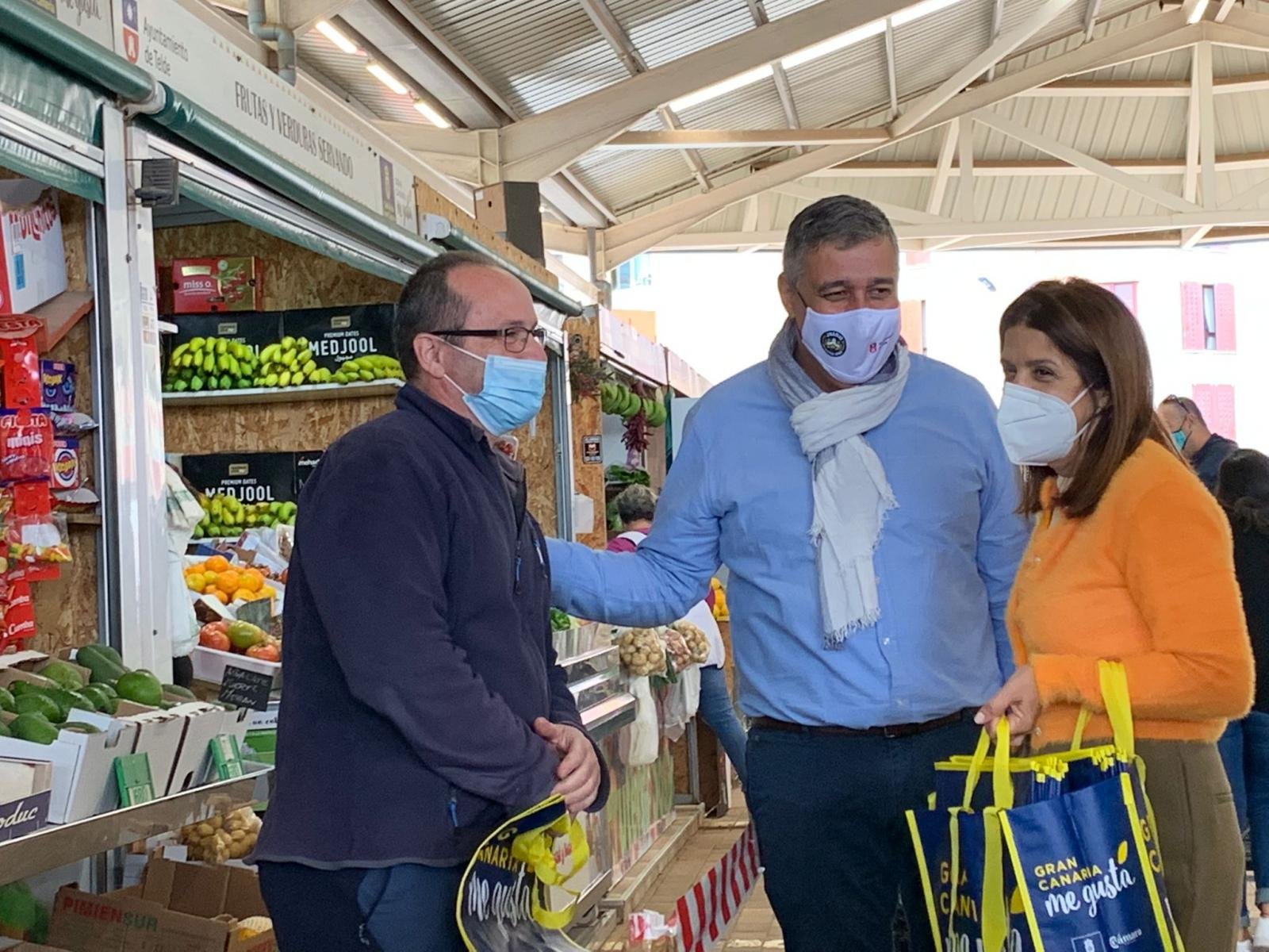 La alcaldesa, Carmen Hernández, el concejal de Mercados, Servando González, y la consejera de Industria, Comercio y Artesanía, Minerva Alonso, acudieron a esta zona comercial del municipio para comprobar la aceptación de esta iniciativa y, además, participar en el reparto de bolsas promocionales de la campaña de Navidad.