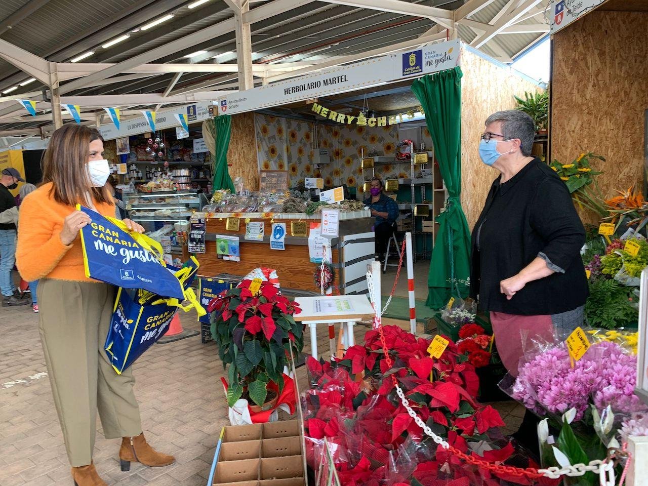 La alcaldesa, Carmen Hernández, el concejal de Mercados, Servando González, y la consejera de Industria, Comercio y Artesanía, Minerva Alonso, acudieron a esta zona comercial del municipio para comprobar la aceptación de esta iniciativa y, además, participar en el reparto de bolsas promocionales de la campaña de Navidad.