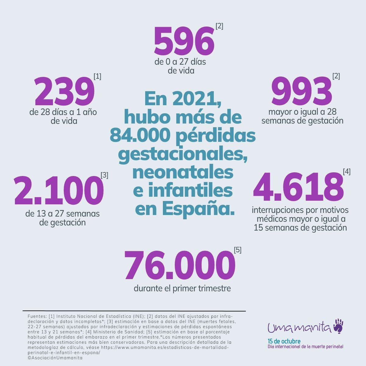 Por su parte, Umamanita anima a sensibilizar a la sociedad sobre la importancia de una mayor comprensión y apoyo desde el entorno social con relación a todos los tipos de pérdida, con independencia del momento en que suceda -primeras semanas del embarazo, tercer trimestre o después del parto- o cuál sea la causa -interrupción del embarazo por motivos médicos o una muerte espontánea intrauterina-” y a luchar por la mejora de la atención sanitaria para los afectados. Además, reflexiona sobre la necesidad de “reducir sustancialmente la tasa de mortalidad perinatal, lo cual se puede conseguir con estrategias y enfoques cuya efectividad está comprobada, salvando así las vidas de cientos de bebés cada año”.