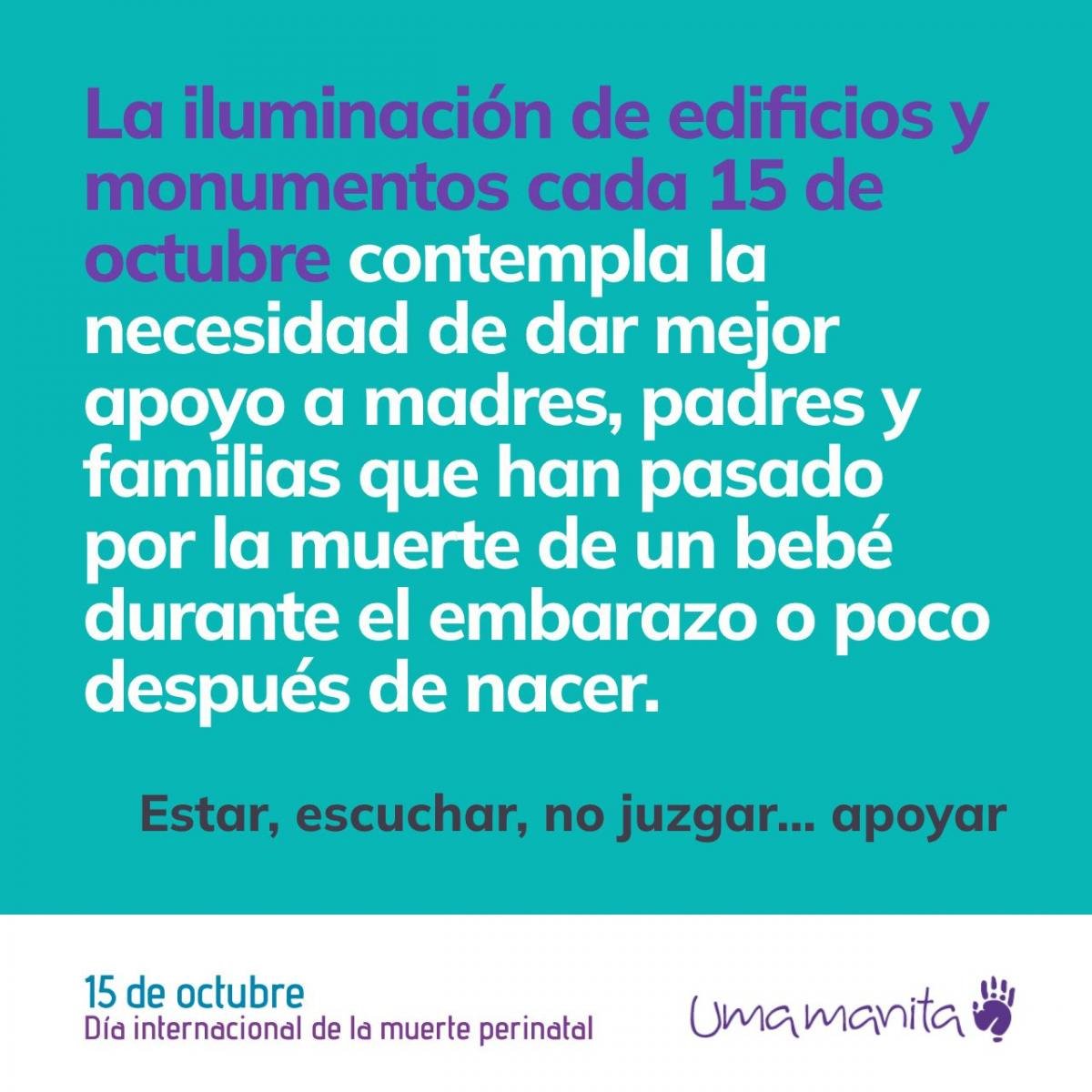 Por su parte, Umamanita anima a sensibilizar a la sociedad sobre la importancia de una mayor comprensión y apoyo desde el entorno social con relación a todos los tipos de pérdida, con independencia del momento en que suceda -primeras semanas del embarazo, tercer trimestre o después del parto- o cuál sea la causa -interrupción del embarazo por motivos médicos o una muerte espontánea intrauterina-” y a luchar por la mejora de la atención sanitaria para los afectados. Además, reflexiona sobre la necesidad de “reducir sustancialmente la tasa de mortalidad perinatal, lo cual se puede conseguir con estrategias y enfoques cuya efectividad está comprobada, salvando así las vidas de cientos de bebés cada año”.