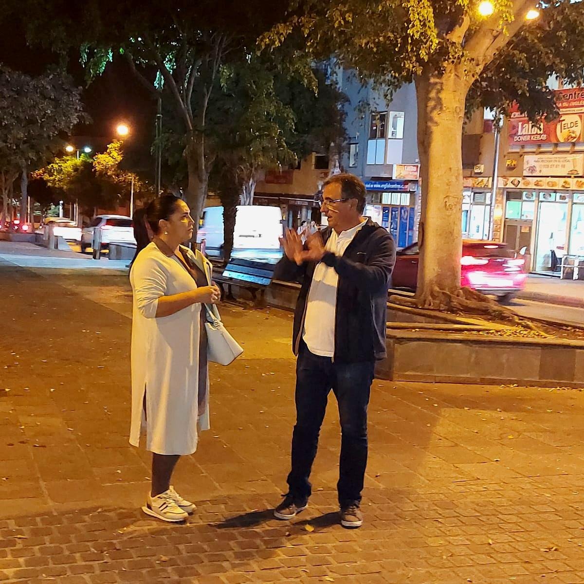 El concejal de Alumbrado Público, Juan Francisco Artiles, acompañado de la responsable de la empresa eléctrica Elecnor, Cristina Mateos, revisó a pie de calle los trabajos que se están llevando a cabo en distintos puntos de la ciudad para recibir la Navidad.