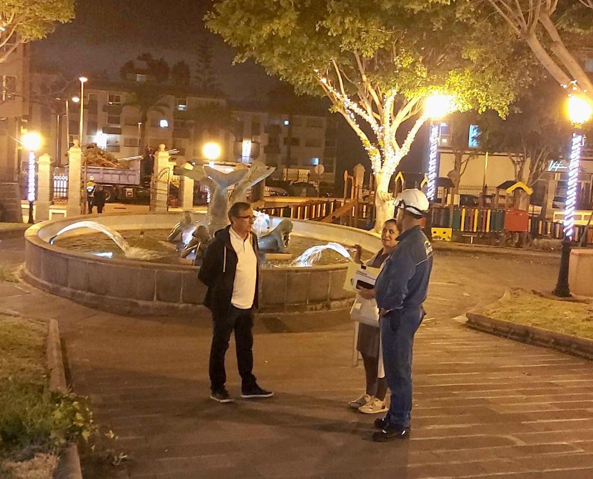 El concejal de Alumbrado Público, Juan Francisco Artiles, acompañado de la responsable de la empresa eléctrica Elecnor, Cristina Mateos, revisó a pie de calle los trabajos que se están llevando a cabo en distintos puntos de la ciudad para recibir la Navidad.