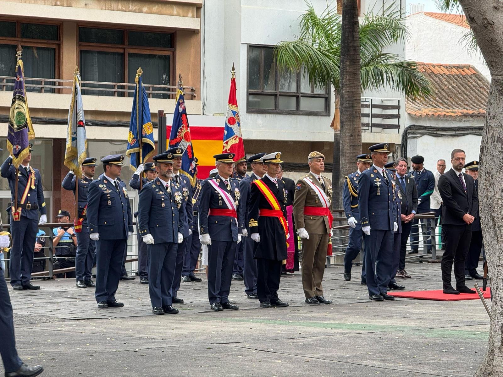 A la llegada del general jefe del Mando Aéreo de Canarias, Francisco Javier Vidal, se recibieron los honores, y se pasó revista a las fuerzas formadas, mientras el alcalde ocupaba su lugar. Tras ello, el general se dirigió a los asistentes para agradecer su presencia. De esta manera, daría comienzo el acto central de la Jura de Bandera.