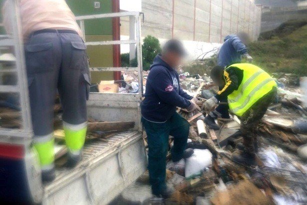 Según su portavoz, Juan Antonio Peña, desde finales de la semana pasada “empleados públicos han recibido la orden de retirar escombros y diferentes materiales depositados en las vías públicas del sector de Maipez”, zona industrial próxima a Jinámar. En la retirada de estos materiales, Peña asegura que “el propio personal se ha encargado de separar y manipular restos de amiantos, como son bidones y planchas”.