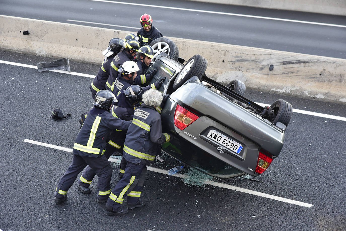 Una colisión entre varios vehículos y el vuelco de uno de ellos este al mediodía en la GC-1, en dirección a Las Palmas de Gran Canaria, a la altura de Telde ha provocado largas retenciones. El Servicio de Urgencias Canario ha asistido a tres personas. Dos de ellas han tenido que ser trasladadas al hospital.