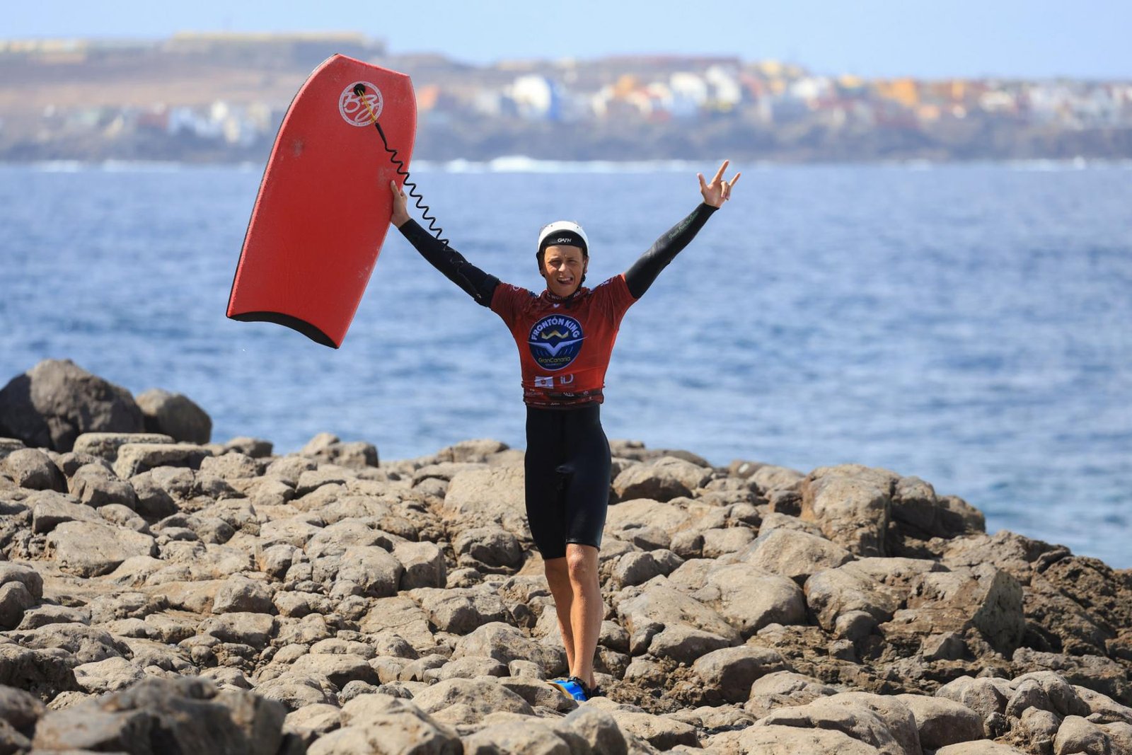 Enfrentamiento directo de dos atletas locales y conocedores de la ola de El Frontón, Daniel Quintana Vs Lionel Medina. Un apasionante heat que mostró nuevamente el nivel de bodyboard en Islas Canarias. Lionel Medina no solo avanzó como primero, sino que además realizó una de las maniobras más radicales de todo el evento, un aéreo reverse muy alto que aterrizó con todo, levantando a la grada en Gáldar. Daniel Quintana estuvo muy cerca, pero esta vez no pudo con su amigo y compatriota Lionel, por lo que se despide de una competición por su parte casi perfecta.
