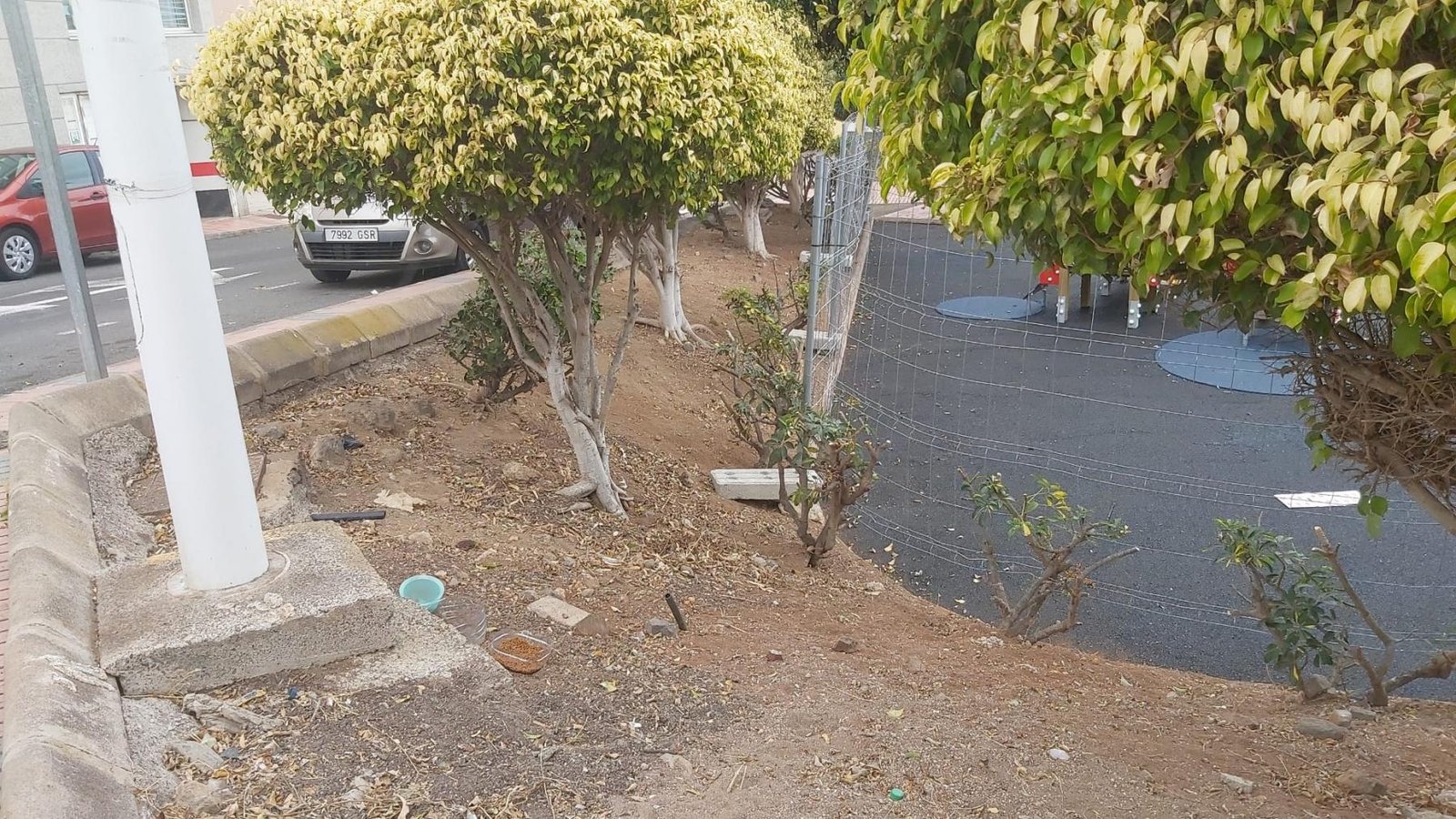 Piden que se ponga riego por goteo y que se plante, por supuesto, que se haga el mantenimiento de una zona donde hay un parque infantil nuevo y que menos que los niños y sus padres y abuelos puedan estar en un espacio saludable.