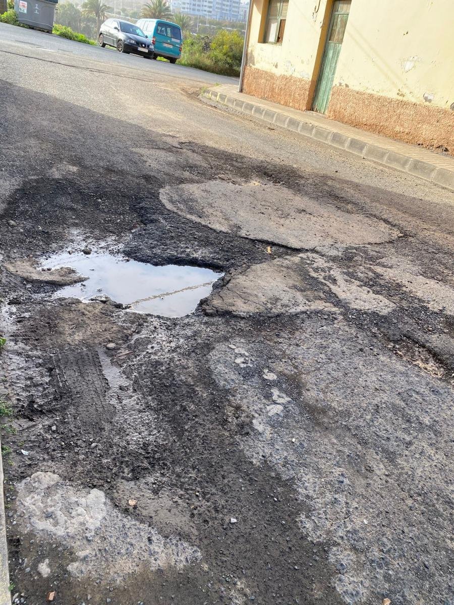 Este desolador aspecto presentan las calles del barrio de El Caracol en Telde, especialmente en la calle Tamadaba. Una tónica que se repite en el resto de la ciudad. Baches que parecen cráteres sin solución mientras las caídas de transeúntes, avería de vehículos y los accidentes de tráfico se suceden sin solución. ¿Hasta cuándo?…