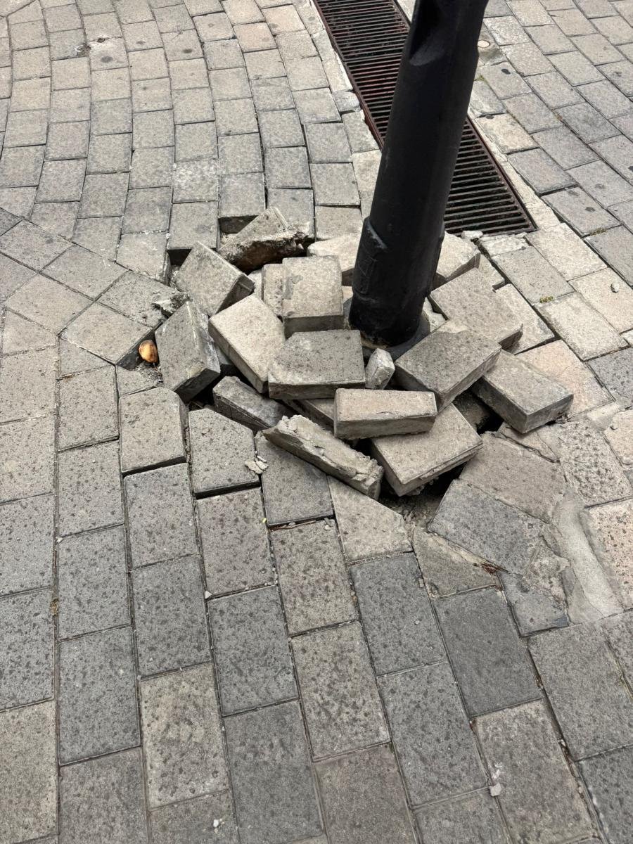 VOX TELDE DENUNCIA EL ESTADO DEGRADANTE DE LOS ADOQUINES Y LA CHAPUZA EN UN BOLARDO EN SAN JUAN