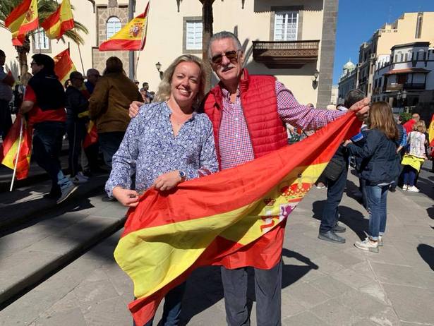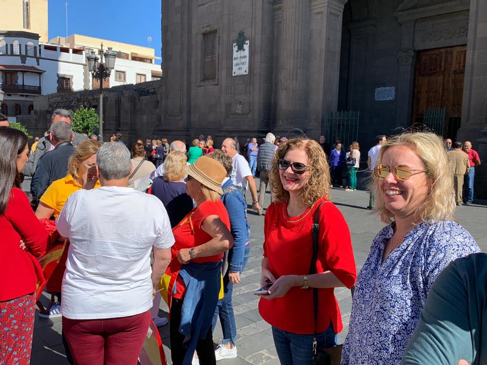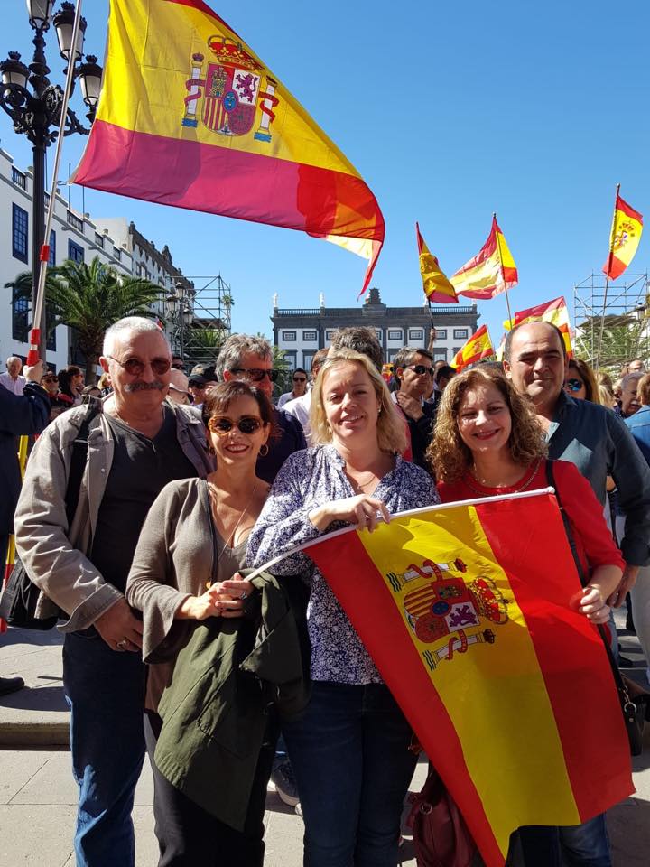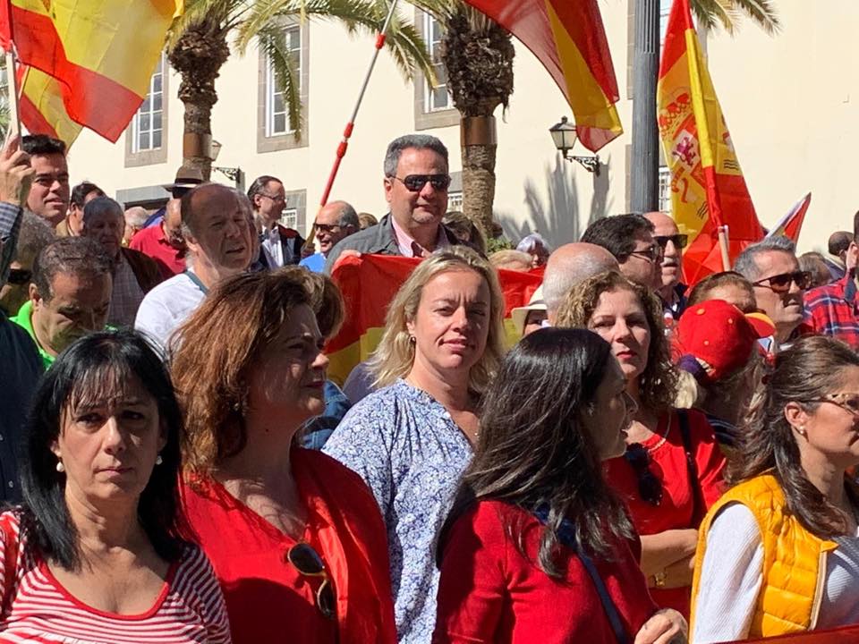 Una representación del Partido Popular de Telde encabezada por su presidente local y candidata a la alcaldía de Telde Sonsoles Martin Jimenez arropó la multitudinaria manifestación cívica y social en la capital grancanaria (en la foto con el escritor teldense Julio González Padrón), sumándose a un clamor nacional por la unidad de España que congregó a más de 200.000 personas en la capital del Reino dejando un mensaje al presidente ilegítimo de España Pedro Sánchez que «España es una nación unida y que juntos decidiremos nuestro futuro», terminando con la lectura de un manifiesto.