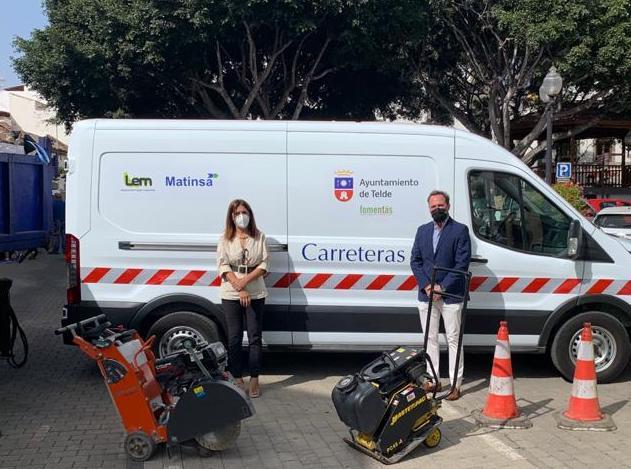 La alcaldesa de Telde, Carmen Hernández, y el concejal de Vías y Obras, Eloy Santana, presentaron el dispositivo humano y técnico destinado al servicio de Mantenimiento y Conservación de la Red Viaria, Señalización Vertical y Horizontal del Municipio, un servicio con el que el Ayuntamiento de Telde cumple el compromiso de ir mejorando de forma paulatina los espacios públicos, una vez saneada la economía de la Institución.
