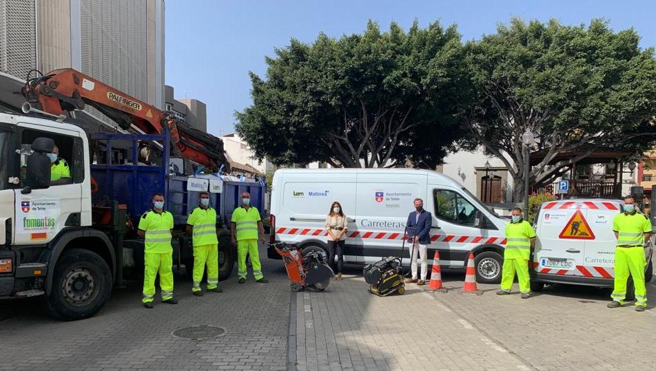 El concejal de Vías y Obras, Eloy Santana, detalló que en este momento están trabajando en las calles de la ciudad dos equipos, uno formado por cuatro operarios (un gruista, un capataz, un peón especializado y un peón ordinario), un camión grúa, una furgoneta, un generador, un compactador y martillo neumático y diversa maquinaria pequeña. El segundo equipo está compuesto por un peón especializado y otro ordinario, un furgón de 3,5 toneladas, un generador, un compactador, un martillo neumático, una cortadora de asfalto y maquinaria pequeña.