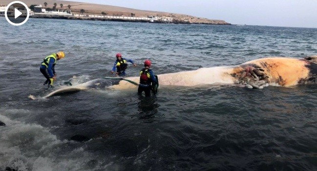 Una ballena de unos 15 metros amaneció este martes muerta y varada en la playa de Ojos de Garza, en Telde. Agentes del Servicio de Protección de la Naturaleza de la Guardia Civil, Seprona, se encuentran desde primera hora de este martes en la playa próxima al aeropuerto y la base aérea de Gando, tras ser alertados de que había una ballena varada en la orilla.