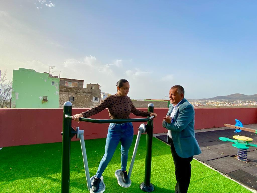 Álvaro Monzón explica que estos trabajos forman parte de un proyecto que cuenta con una subvención de 35.988 euros de la Consejería de Presidencia del Cabildo de Gran Canaria para la dotación de mobiliario y la mejora de las zonas de juego, en el marco del programa Mobiliario para Espacios Públicos y Luminarias Solares.