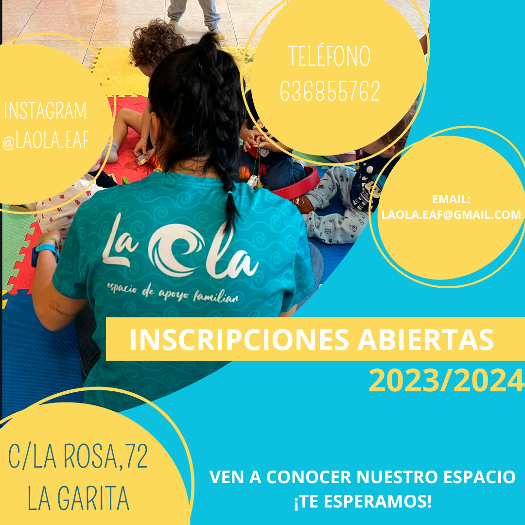 La Ola Espacio de Apoyo Familiar continúa desarrollando su amplio programa de actividades en Telde y ya ha abierto las inscripciones del periodo 2023-2024 para los menores de 9 meses hasta los 3 años. Las familias interesadas en inscribir a sus pequeños o agendar una visita a las instalaciones ubicadas en la calle La Rosa, número 72, de La Garita pueden hacerlo a través del 636 855 762 y en laola.eaf@gmail.com.