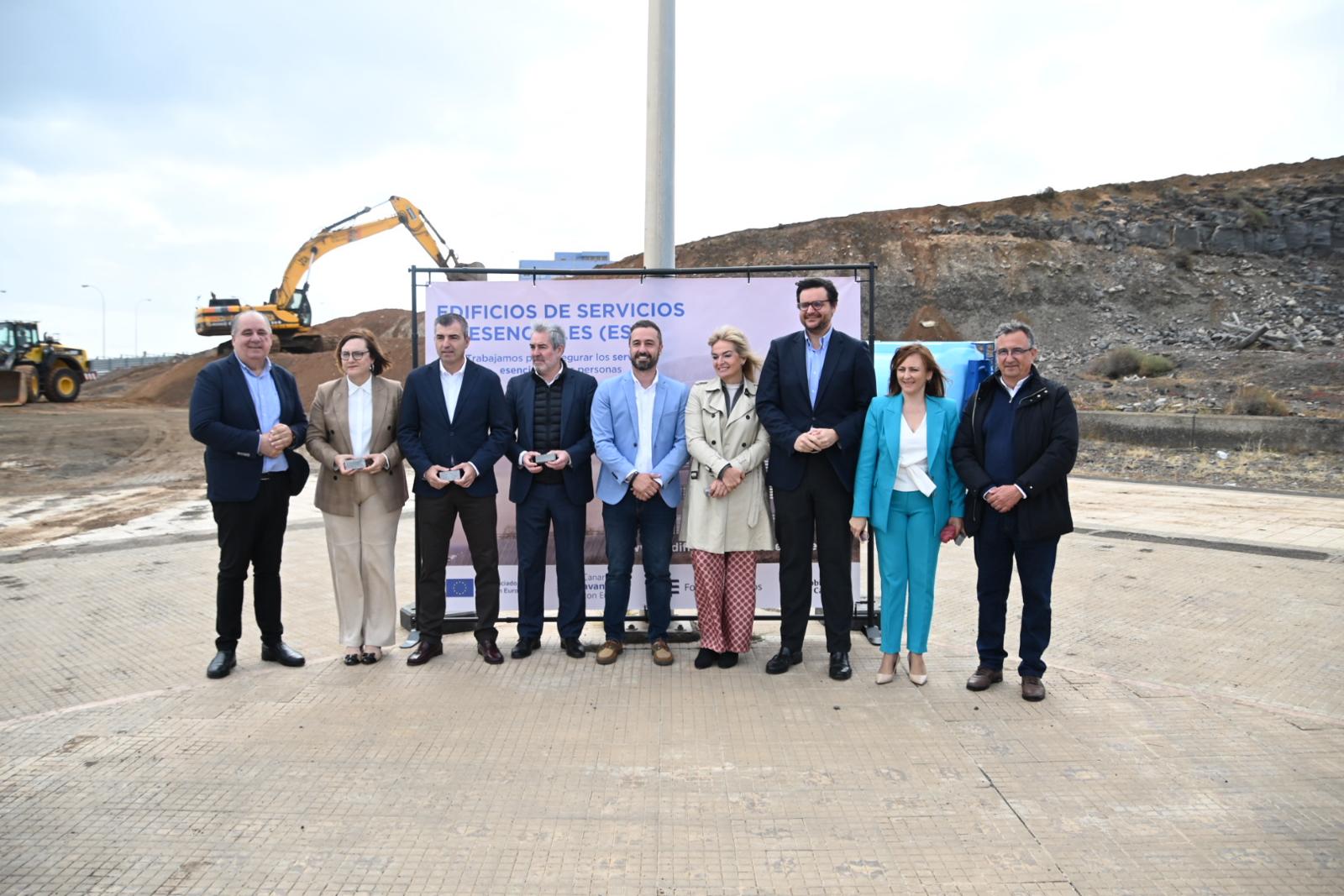 El presidente de Canarias, Fernando Clavijo, ha presidido este lunes el acto de colocación de la primera piedra del futuro edificio de servicios esenciales que estará situado en Telde, una de las dos infraestructuras gemelas que el Gobierno de Canarias destinará a garantizar los servicios de emergencias y atención 24/7 de la población de las Islas. Durante el acto protocolario, señaló que este proyecto “responde a una necesidad que nos hará situarnos a la vanguardia de la gestión de las emergencias, la seguridad y la atención a los canarios y canarias”.
