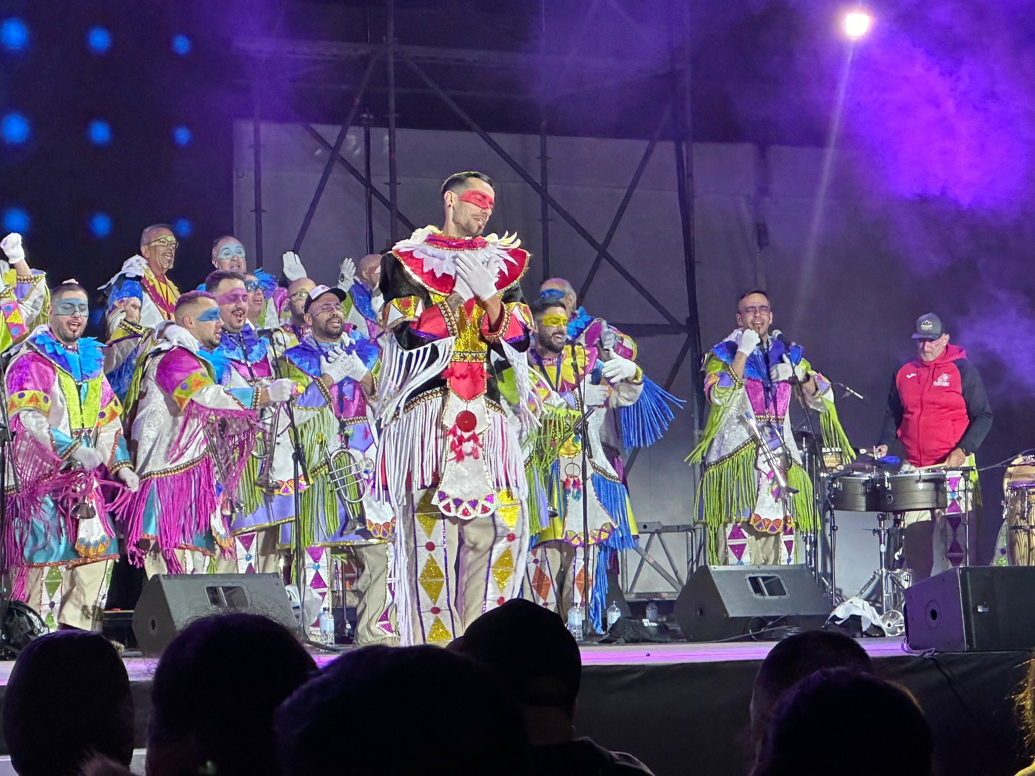 El escenario del parque de San Juan se llenó de color y micrófonos para dar vida a un espíritu murguero que contagió a todos los asistentes. Así, los cinco grupos carnavaleros protagonistas de la noche inundaron el Auditorio de emoción y alegría con sus letras y sus voces, arropados por aplausos y ovaciones.
