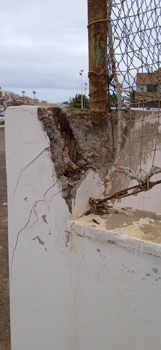 La obra fue abatida desde su pedestal, donde estaba anclada con unas varillas de hierro corrugado y, al golpearse contra el suelo, se fragmentó en siete pedazos sufriendo daños importantes. Tras permanecer unos días en los almacenes de la Casa de Colón, se solicita a Tibicena Arqueología y Patrimonio, entidad especializada en trabajos de restauración patrimonial, la realización de una propuesta de tratamiento para la reparación de la escultura. Una vez aceptada, las piezas se trasladan al taller de restauración de la empresa.