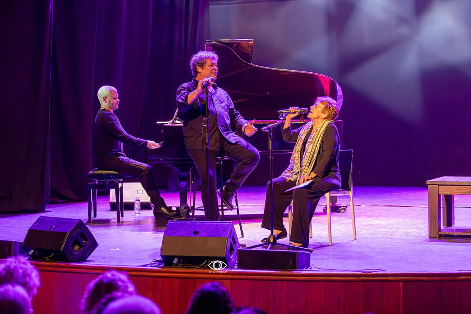 Prosiguió con «Un bolero azul», de su disco “«Chabuco en La Habana» y, como reza la letra: “transparente emocional, ideal para soñar”. Creo que esta canción, justo en el medio de la velada, resume el sentir del espectáculo. Entiendo que nos convocaron para entrar en un trance todos juntos. Y, amigos, vaya que si entramos. Tras esto, otra de las sorpresas de la noche al subir al escenario a formar dueto: Polito Ibáñez. Este cantante cubano, encuadrado dentro de lo que se denominó la “novísima trova cubana”, esa que sucedió a Silvio Rodríguez y Pablo Milanés con tintes de rebeldía; compartió con el maestro el cásico «Contigo aprendí», apoyados por los coros del respetable.