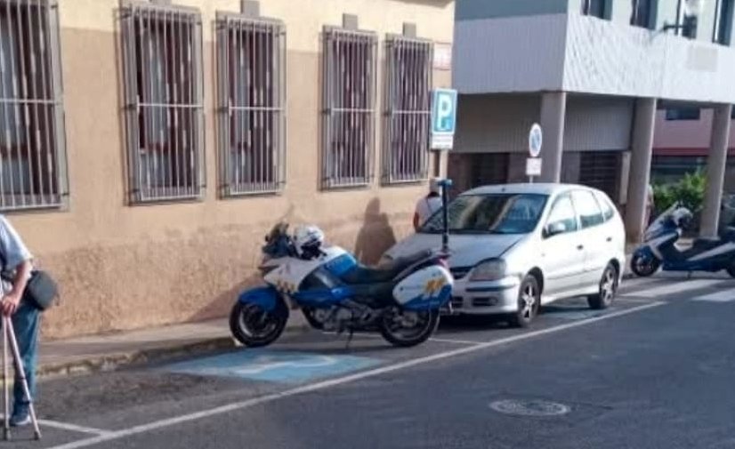 UNA MOTO DE LA POLICIA LOCAL DE TELDE LE QUITA EL APARCAMIENTO PARA DISCAPACITADOS A USUARIOS DEL HOGAR DEL PENSIONISTA