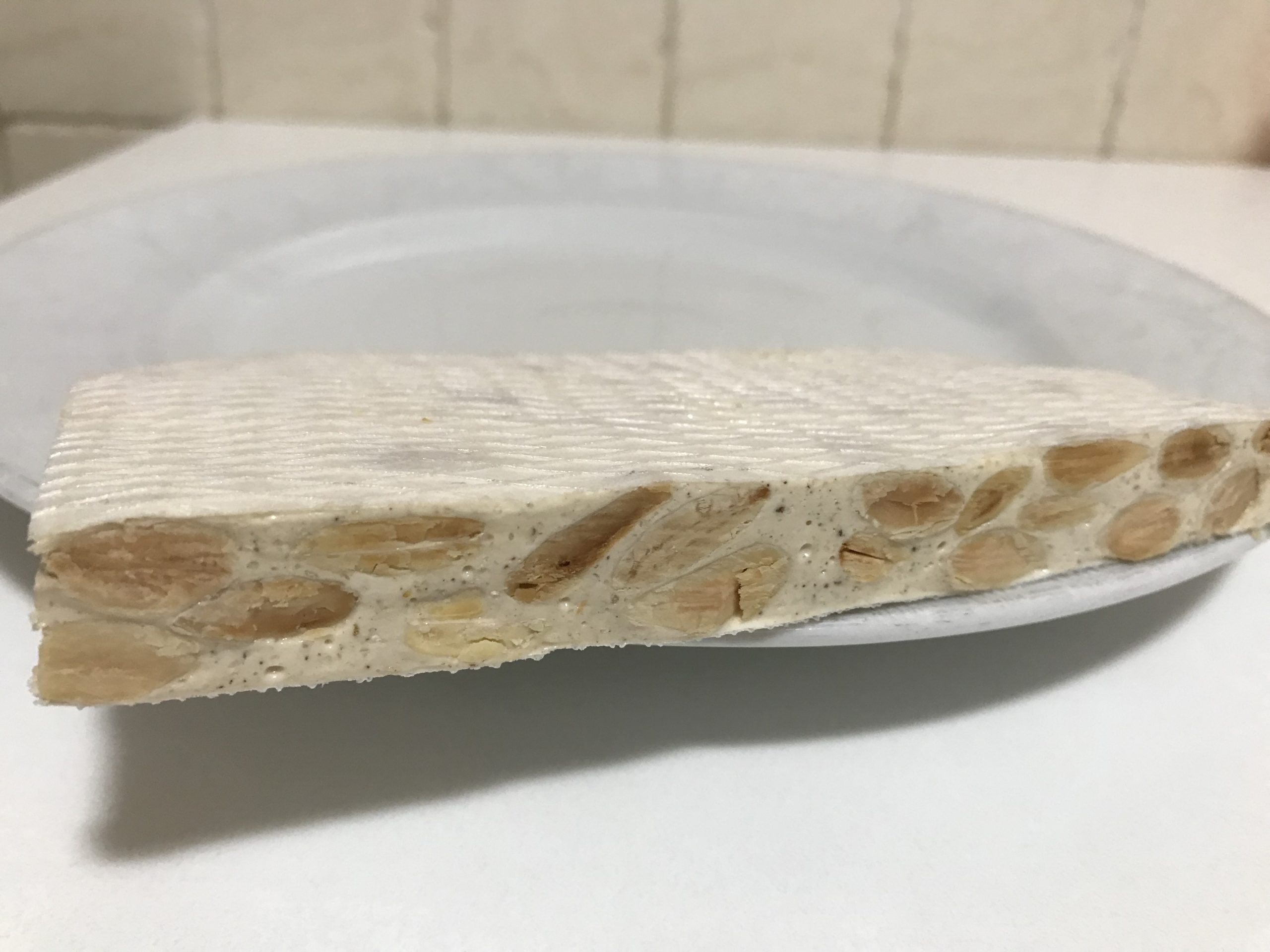 Por todo ello, he sido capaz de elaborar un turrón duro como los que hacen en Alicante con cien gramos de miel de abeja, cien gramos de azúcar blanquilla de caña, y 200 gramos de almendra —pelada y tostada previamente al horno a 180 grados centígrados durante diez minutos—, y la clara de un huevo tamaño L.