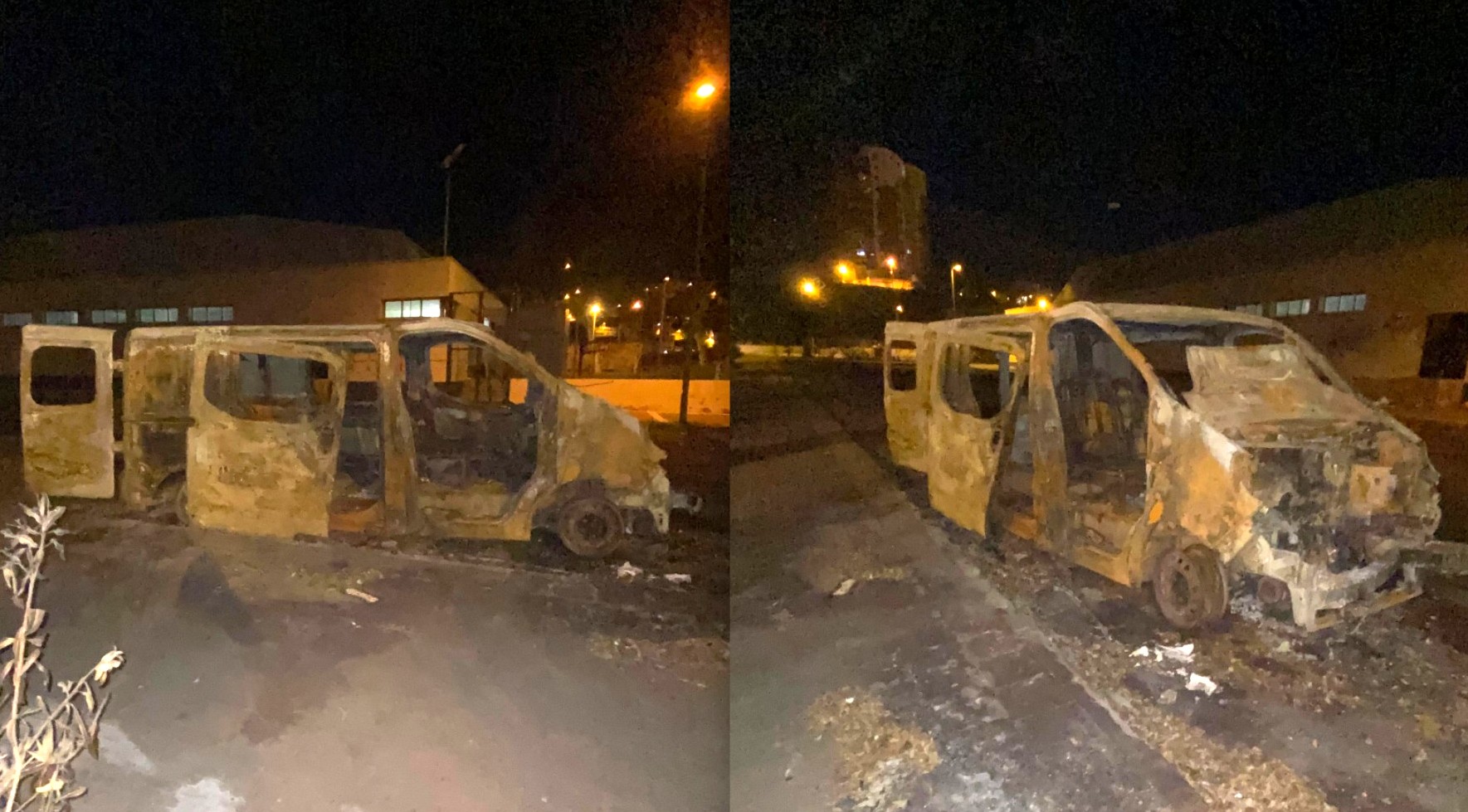 Más de dos semanas lleva sin retirar este furgón totalmente calcinado de la explanada de Jinámar, espacio donde cada domingo se celebra el mercadillo y donde fue quemado. El vehículo está estacionado en la explanada de Compañía de Jesús, habitual punto de encuentro vecinal y comercial durante los fines de semana.