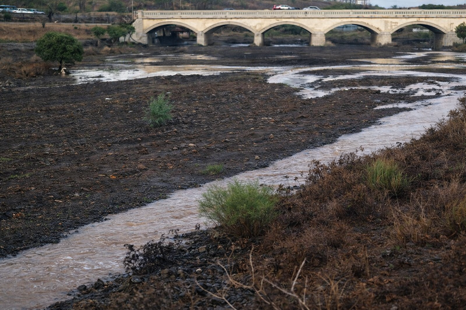 La escorrentía se abre paso entre la maleza en dirección a su desembocadura natural en el mar, en una escena tan infrecuente como llamativa para vecinos y visitantes.