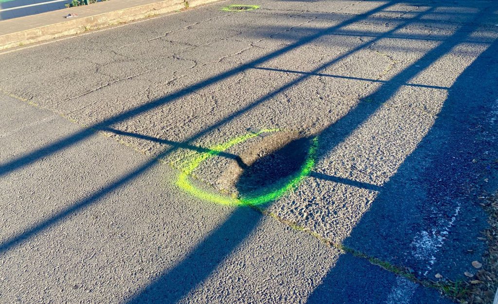 Un grupo de padres de los niños que forman parte de la cadena de fútbol base de la UD Telde, hartos de destrozar sus vehículos en los socavones que hay en el asfalto de la carretera de acceso a las instalaciones deportivas del estadio Pablo Hernández (El Hornillo), han decidido señalizar por su cuenta con pintura la presencia de los mismos.