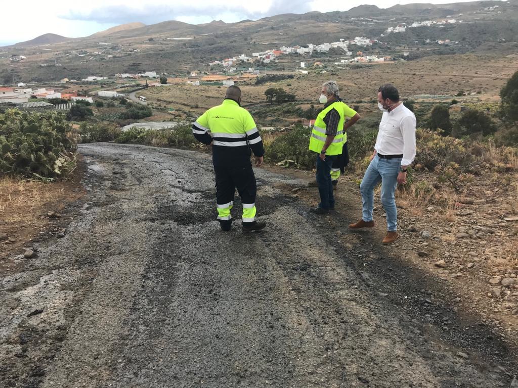 El concejal de Vías y Obras, Eloy Santana, visitó los trabajos de repavimentación que se está ejecutando la Consejería de Sector Primario del Cabildo de Gran Canaria a instancias del Ayuntamiento de Telde, en el camino rural de Piletas.