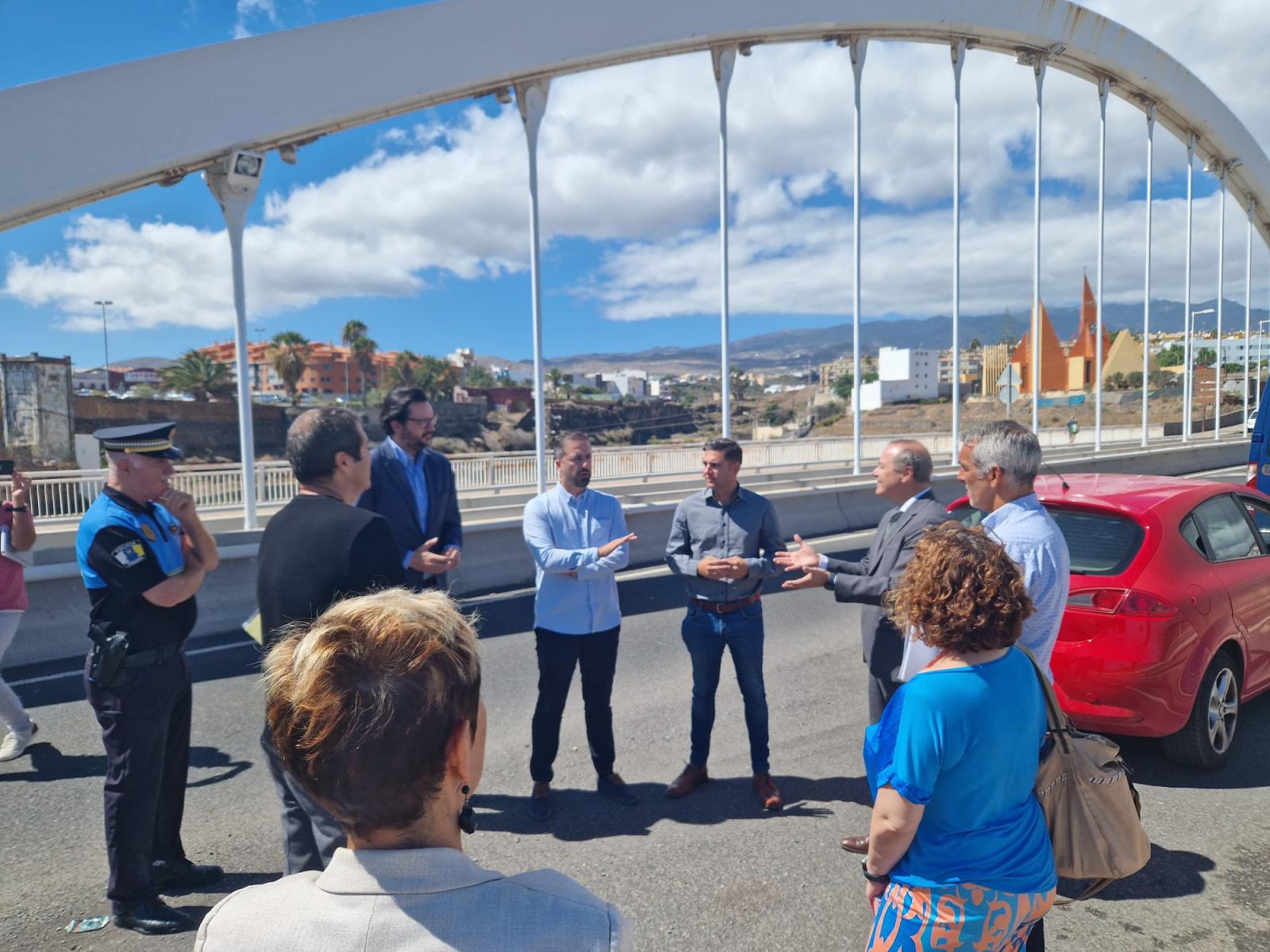 Una vez allí, los responsables institucionales analizaron de primera mano el estado actual del puente, concretamente en la zona donde se encuentra la torreta eléctrica que se ubica sobre la carretera. Así, ambas partes han decidido iniciar los trámites para, por un lado, que el Ayuntamiento proponga el proyecto de expropiación de las parcelas sobre la que está ubicado el torreón, y el Cabildo, por su parte, para mover la infraestructura eléctrica y acometer los trabajos que culminen el tramo de acera y de carretera que falta por construir.
