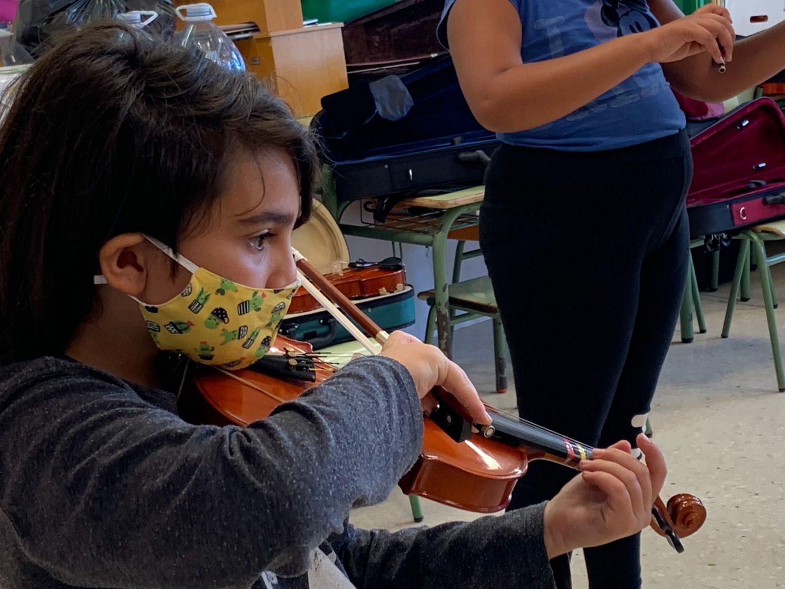 En concreto, en este centro educativo se ofrecen clases de instrumentos como el clarinete, el saxofón tenor y bajo, la flauta travesera, el violín, la viola o el violonchelo, que son prestados a las familias para que no tengan que adquirirlos. Actualmente participan en las actividades más de medio centenar de menores y sus padres, ya que una de las condiciones imprescindibles para formar parte de este proyecto, explicó su director, José Brito, es el compromiso y la participación de las familias.