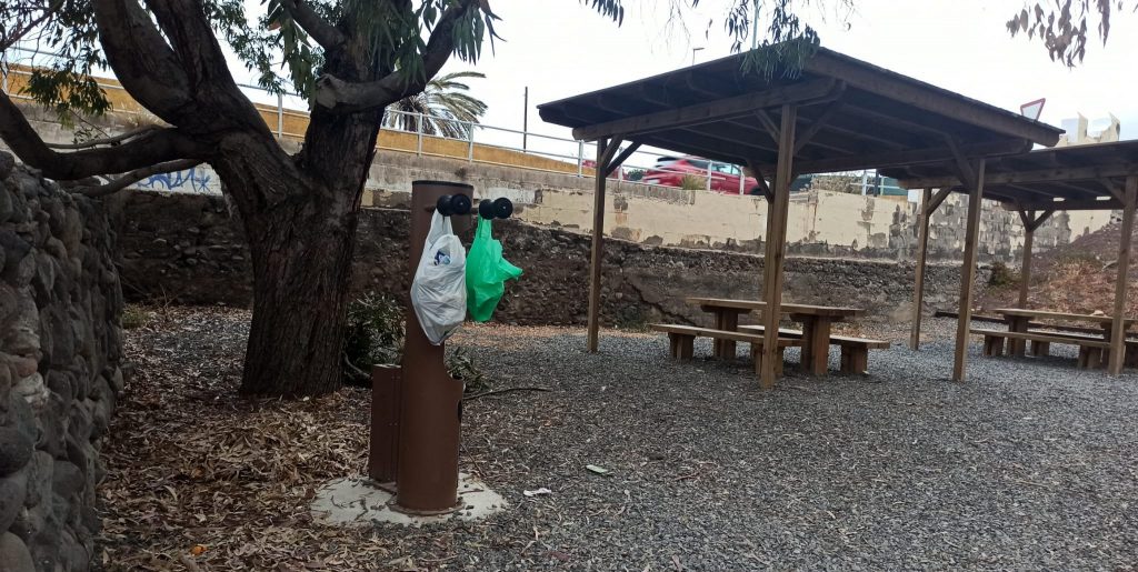 Este equipamiento ubicado bajo unos viejos eucaliptos que están junto al puente de los Siete Ojos del Barranco Real, a la altura de la entrada al casco antiguo de Telde por la carretera de Jinámar, la actual GC-100, presenta un aspecto desolador de basura y falta de limpieza.