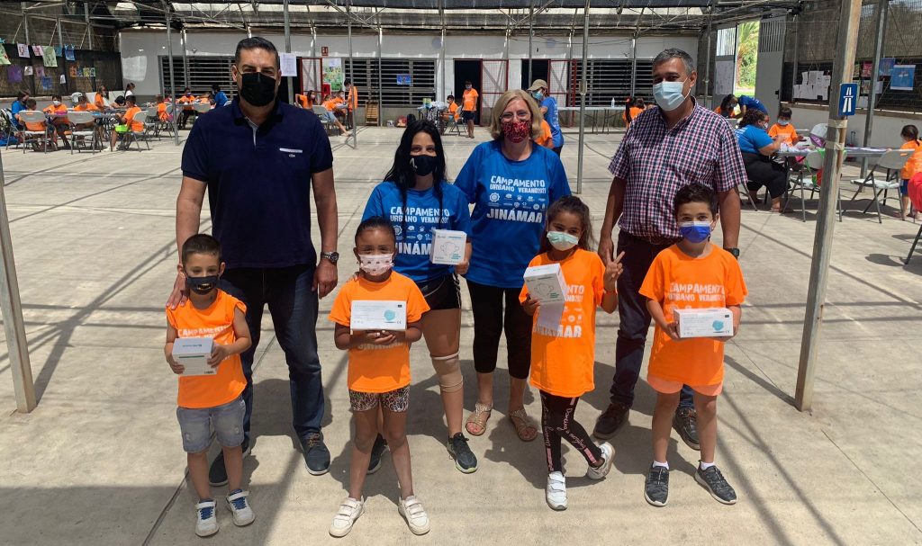 Diego Ojeda y Servando González hicieron entrega, además de 1.400 mascarillas sanitarias que serán repartidas entre los niños y jóvenes participantes para garantizar la seguridad. Cabe recordar que este campamento cuenta con el apoyo municipal a través del Plan Integral del Valle de Jinámar.
