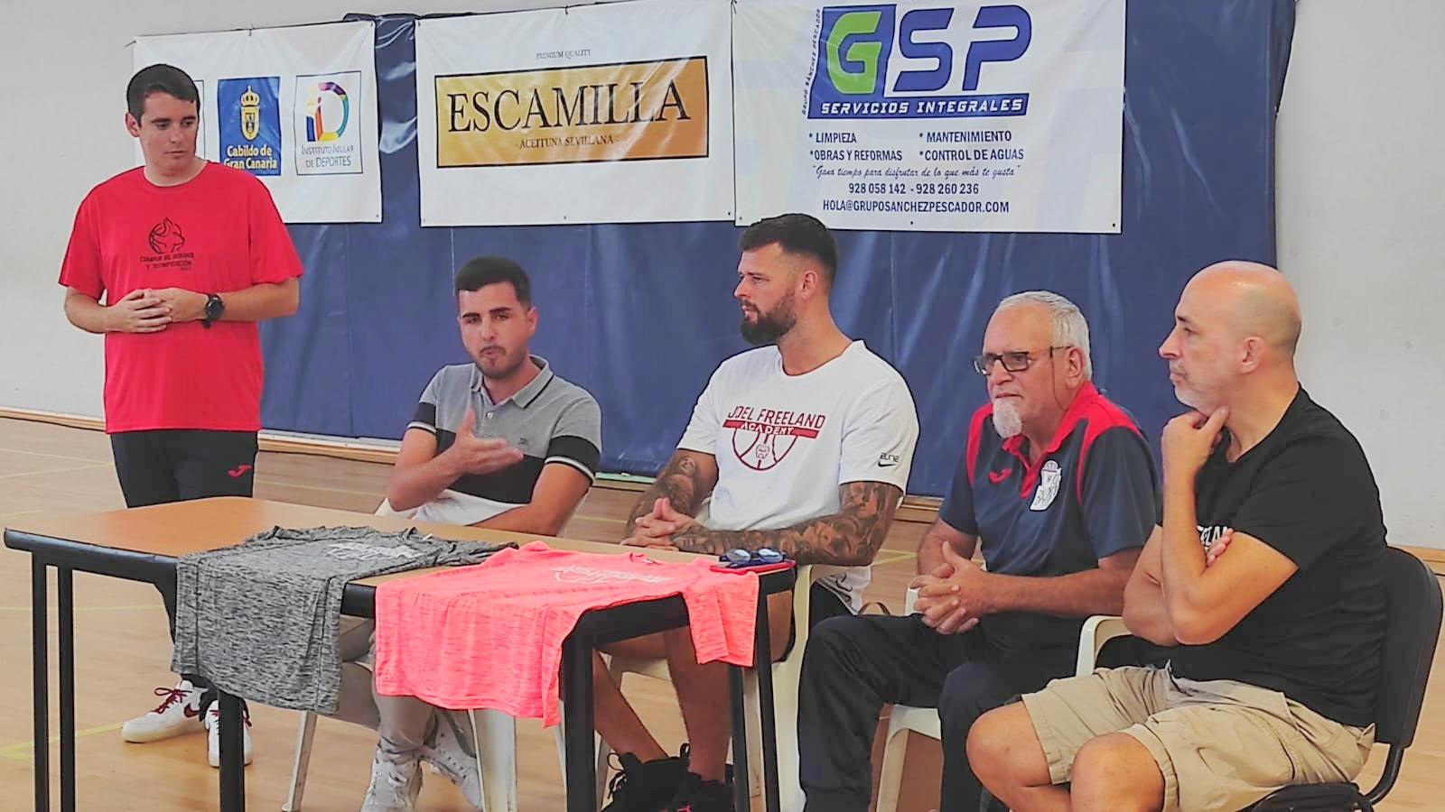 Santana Caballero acompañado por Carmelo Ortega director del campus y presidente del CB. Telde, en su intervención ante los participantes les animo a seguir el ejemplo de Freeland indicando “que disfruten del verano con la práctica deportiva y les recordó, que con el esfuerzo y la constancia todos podemos lograr grandes objetivos, como lo alcanzado por Joel, que traten de disfrutar con el deporte y que cuando compitan lleven orgullosos el nombre de Telde, para llevarlo a lo más alto”.