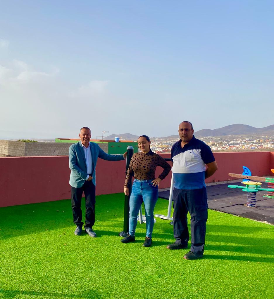 Álvaro Monzón explica que estos trabajos forman parte de un proyecto que cuenta con una subvención de 35.988 euros de la Consejería de Presidencia del Cabildo de Gran Canaria para la dotación de mobiliario y la mejora de las zonas de juego, en el marco del programa Mobiliario para Espacios Públicos y Luminarias Solares.
