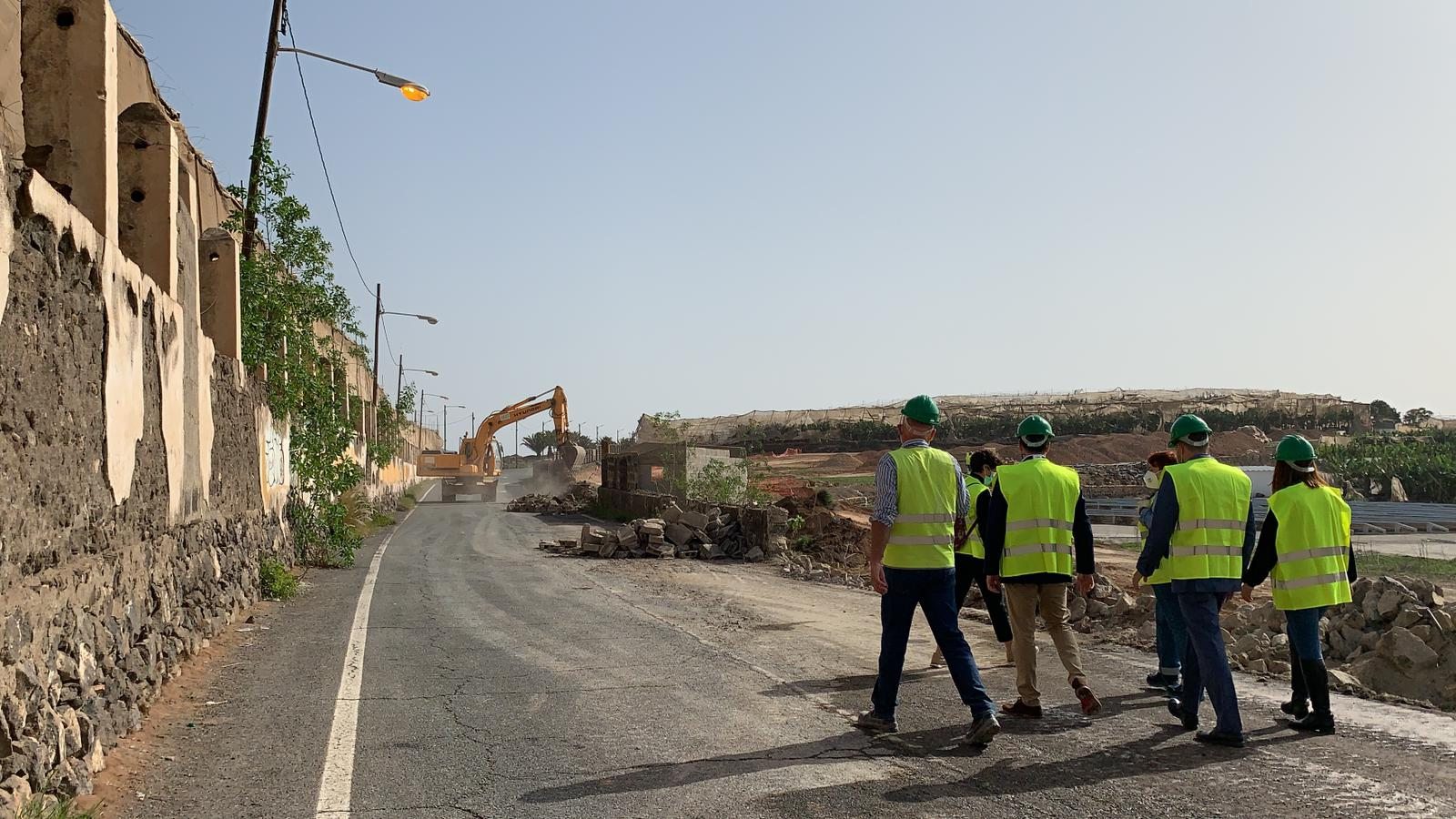 El alcalde de Telde, Héctor Suárez, la vicealcaldesa de la ciudad, Carmen Hernández, y el concejal de Vías y Obras, Eloy Santana, visitaron este lunes la carretera de Melenara, para conocer sobre el terreno los trabajos que se están realizando para proceder al ensanche de esta vía.