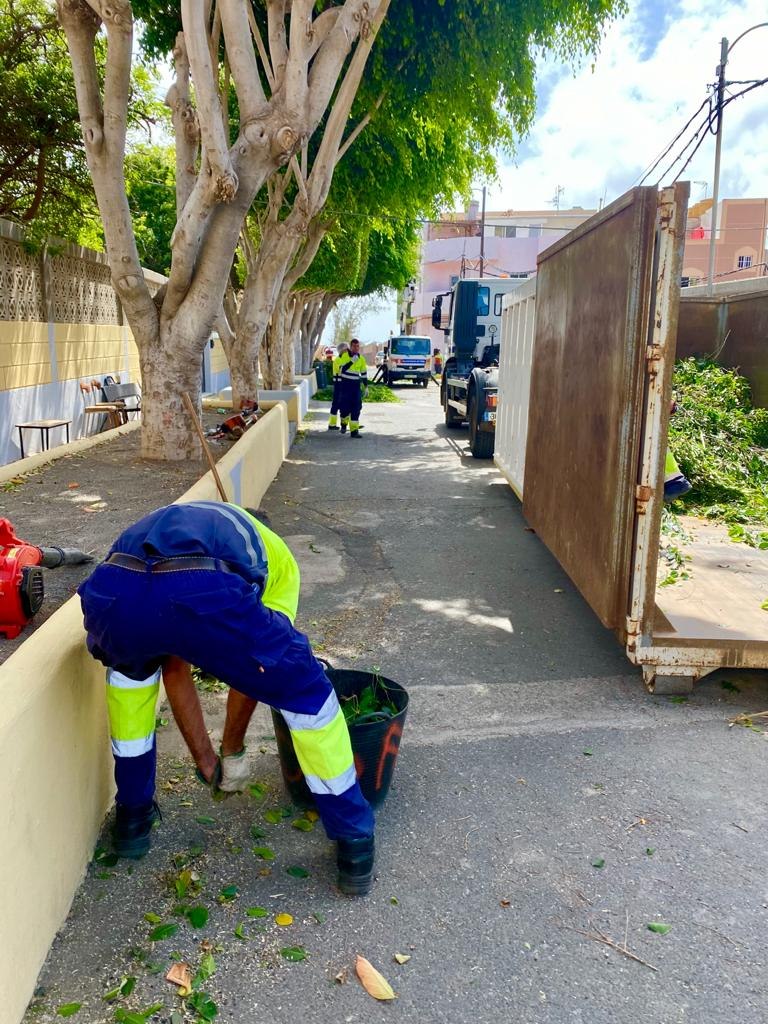 Allí, Monzón explicó que “en la intervención de los operarios se incluye la mayor parte de la arboleda correspondiente al sector de Marpequeña. Asimismo, el concejal indicó que los trabajos finalizarán en las próximas semanas y posteriormente acudirán las brigadas de podadores de grandes árboles al sector del Tablero del Conde, en Jinámar”.