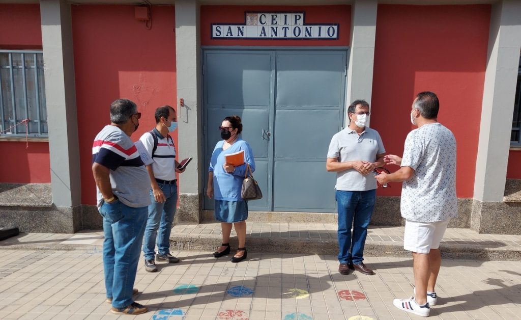 El edil del área, Juan Francisco Artiles, aprovechó la firma del acta de replanteo previa al comienzo de la obra, para visitar el centro junto a la arquitecta municipal, María Jesús Santana, el coordinador del Colectivo de Escuelas Rurales (CER), Salvador Ramírez del Pino, el técnico responsable del proyecto y la dirección de obra, Orencio Rodríguez Camacho, y el representante de la empresa adjudicataria.